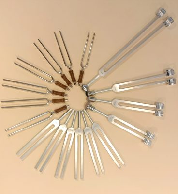 Les diapasons du Cocon viennent d’une entreprise allemande spécialisée dans la fabrication de ces instruments. Ils sont composés d’un alliage d’aluminium et recouverts d’un revêtement supplémentaire. Ils sont dotés d’une précision de fréquence et d’une pureté sonore très élevées. Chaque diapason est vérifié et réglé avec précision à l’atelier.